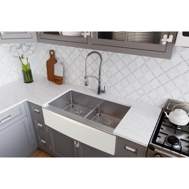 Farmhouse Sink,33 Inch Kitchen Sink,Stainless Steel Farm Sink,Large Single Bowl Farmer Sink,Workstation Apron Front Basin Sink with Integrated Ledge and Accessories. This farmhouse sink reviews will help you to choose the best farmhouse sink without any Ruvati 33 Double Bowl 60/40 - best stainless steel farmhouse sink is for us the best kitchen sink of 2020. Although apron-front sinks are a common design choice for farmhouse-style kitchens, they also work in kitchens of many other styles. A sleek stainless steel apron-front sink fits seamlessly into a modern... We have compared the best farmhouse kitchen sinks in the market. We love